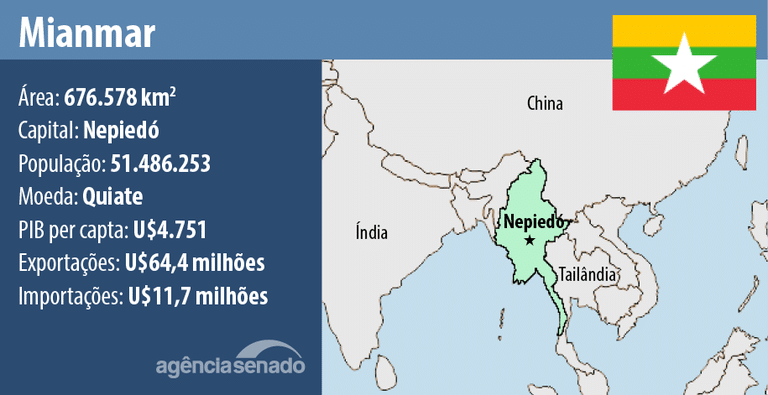 Durante a sua sabatina na Comissão de Relações Exteriores (CRE), em agosto, o diplomata indicado lembrou que Mianmar está localizado em região estratégica, em termos de comércio e produção, para a qual o Brasil mantém interesse firme. Ele afirmou que a instabilidade política pode, sim, resultar em impacto nas relações bilaterais. Mas afirmou que é preciso olhar para os anos de relações bilaterais e também para o futuro, para pensar nas chances de recuperação do outro país.