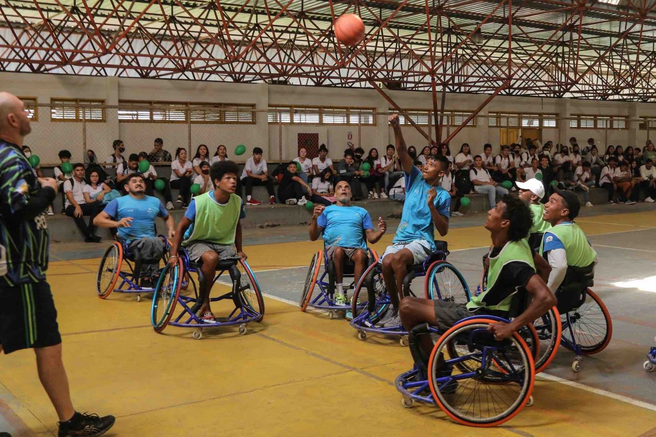 O Programa de Defesa dos Direitos Humanos e Cidadania (PDDHC) da Assembleia Legislativa de Roraima (ALE-RR) promoveu nesta quarta-feira (21) um jogo de basquete com atletas cadeirantes na Escola Estadual Ana Libória, no bairro Mecejana.