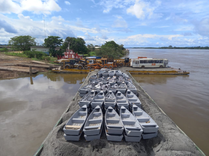 Com objetivo de fomentar condições dignas de trabalho aos pescadores do Baixo Rio Branco, o Governo de Roraima, por meio da Seadi (Secretaria de Agricultura, Desenvolvimento e Inovação), realiza a entrega de 67 barcos, 167 kits completos de pesca, 1.600 mudas de açaí e 100 pés de acerola na Vila Santa Maria do Boiaçu, região de Rorainópolis, neste sábado, 18.