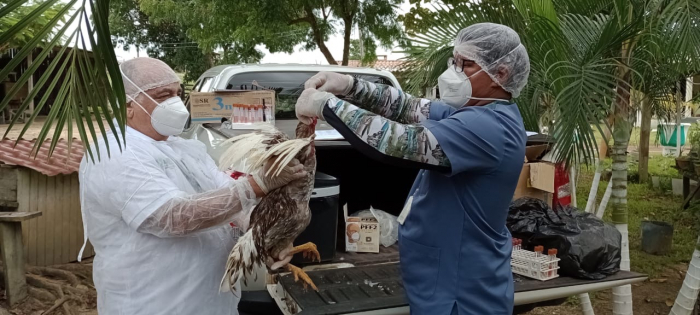 Em janeiro deste ano foi realizada a sorologia de avicultura industrial, onde foi coletado o swab (exame para coleta de secreção) de traqueia e de cloaca, além de soro para identificação do vírus. Esse trabalho foi feito em todas as granjas de postura de Roraima: 10 em Boa Vista, 01 em Caracaraí e 01 no Bonfim, totalizando 12 granjas.
