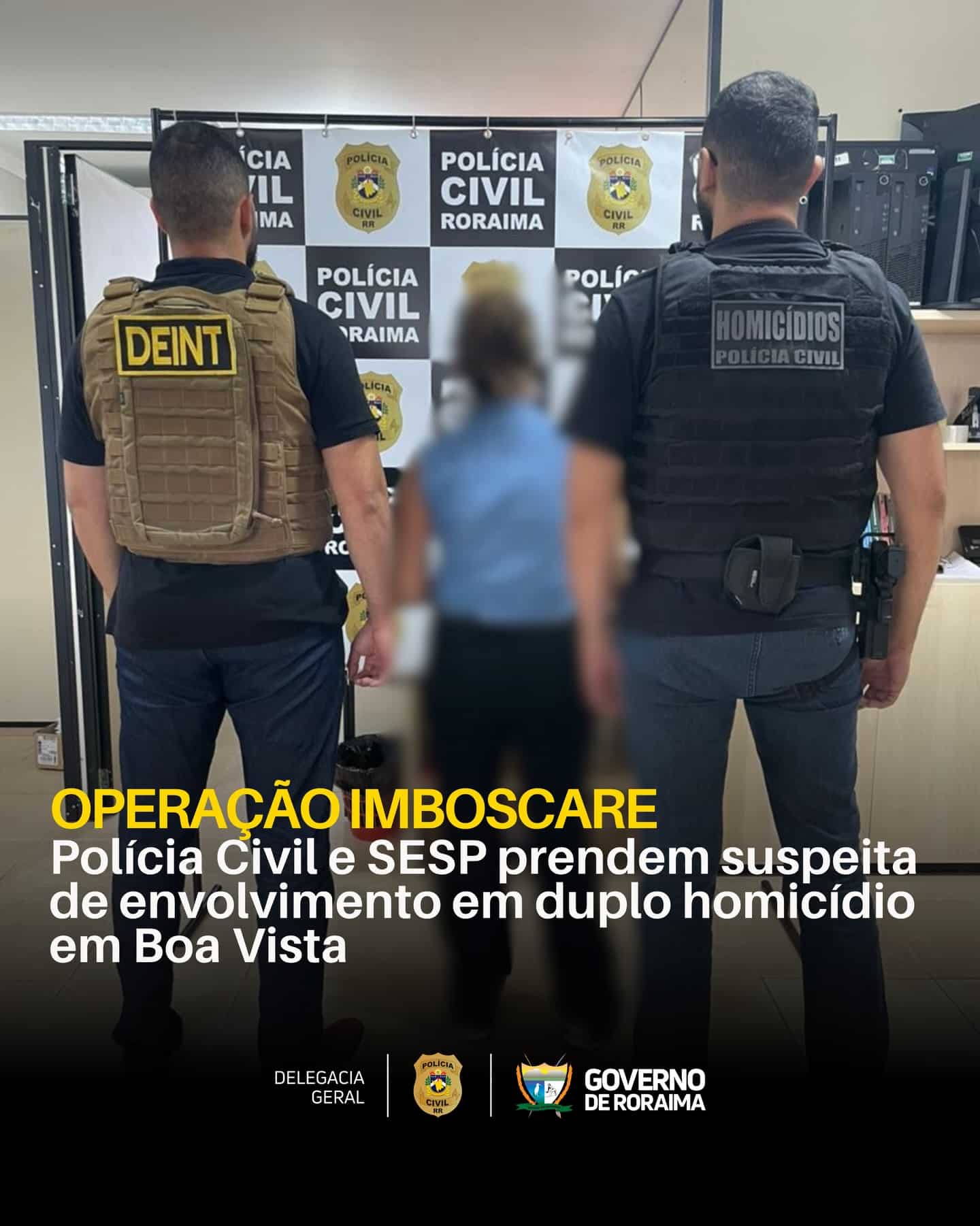 OPERAÇÃO IMBOSCARE: Polícia Civil e SESP prendem suspeita de envolvimento em duplo homicídio em Boa Vista