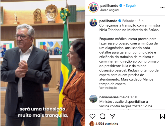 “Vou fazer uma transição com um olhar muito detalhado. Como um bom médico, vou fazer um diagnóstico junto com a ministra. A partir de agora minha dedicação total é pelo desafio que o presidente Lula estabeleceu, que é uma obsessão minha enquanto ministro, enquanto médico, é uma obsessão do presidente Lula, que é reduzir o tempo de espera para quem precisa de atendimento de saúde no nosso País”, disse, nesta quinta-feira (27/2), em vídeo divulgado nas redes sociais.