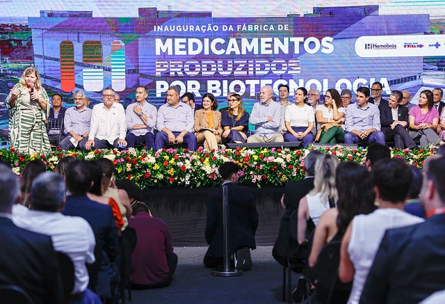 AMPLIAÇÃO NO ATENDIMENTO – Para a ministra da Saúde, Nísia Trindade, a Hemobrás é um símbolo da ciência e tecnologia em saúde no Brasil e a inauguração representa um dia muito especial por promover uma ampliação no atendimento aos pacientes que sofrem com o distúrbio na coagulação do sangue. “É um medicamento biológico que requer muita tecnologia e muito conhecimento. Nós visitamos a fábrica com o presidente Lula, visitamos a planta, e a Hemobrás ainda inaugurará a planta de hemoderivados que vai produzir a imunoglobulina, que vai produzir albumina – tecnologias e bases de conhecimento que servirão para vários outros produtos”, ressaltou.