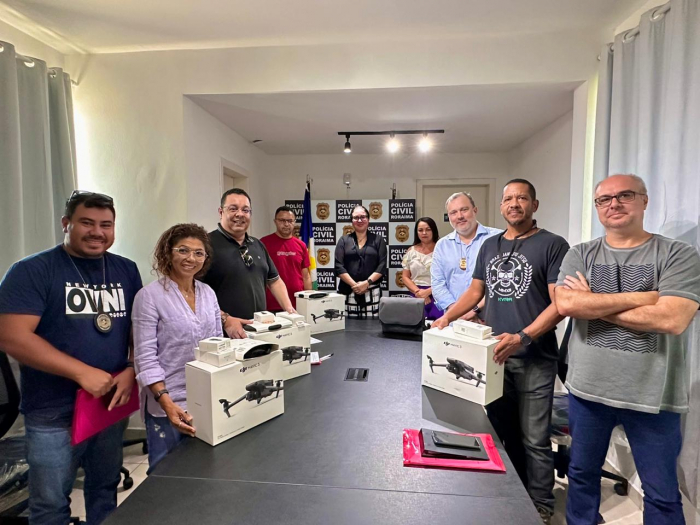 Cinco drones DJI Mavic 3, foram entregues às unidades policiais específicas como suporte nas investigações, pela delegada Geral Adjunta da Polícia Civil, Darlinda de Moura Viana, em reunião ocorrida na Cidade da Polícia Civil.