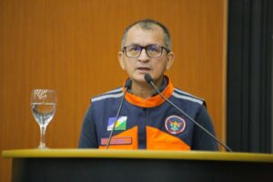 Comandante-geral do Corpo de Bombeiros, coronel Anderson Carvalho de Matos apresentou as legislações que organizam a política nacional e estadual de defesa civil e alertou para a relação entre o El Niño, as secas e os riscos de incêndios em 2023. “Agosto, por exemplo, superou o registro máximo histórico em 25 anos, com 78 focos. Até o momento, tivemos 108 focos registrados em setembro”, disse o comandante.