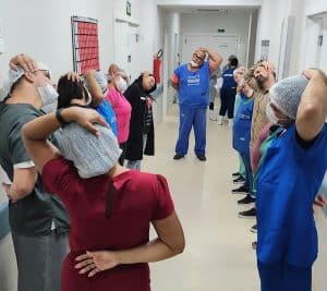 Além disso, as equipes das UTIs (Unidades de Terapia Intensiva) participaram de aulas de terapia intensiva com ginástica laboral, aromaterapia e auriculoterapia, visando à prevenção de estresse, ansiedade e relaxamento para os servidores.